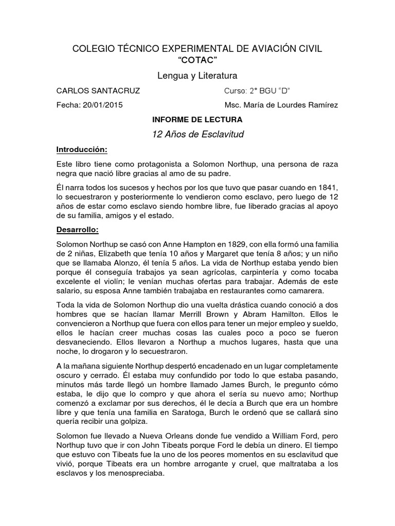 12 Años de Esclavitud Informe | PDF | Solomon Northup | Esclavitud