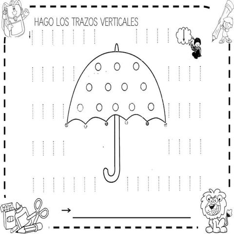 Ejercicios de grafomotricidad con trazos verticales. Fichas para niños