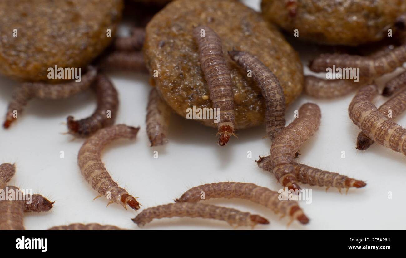 Gusanos pequeños encontrados en el alimento seco del perro/Kibble que mide cerca de 1cm en longitud Fotografía de stock - Alamy