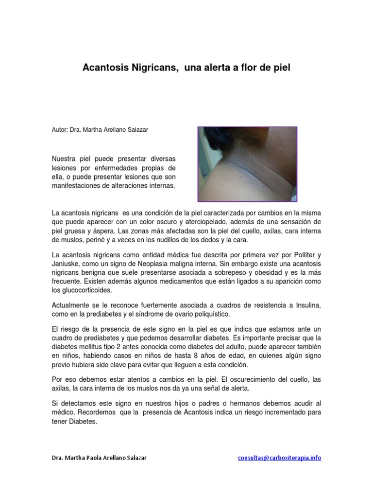 Consultorio Dermatológico "Doctora Piel" - 🏥ACANTOSIS NIGRICANS👩⚕️ Consultorio Dermatológico "Doctora Piel" 🏥¿QUÉ ES LA ACANTOSIS NIGRICANS? Acantosis nigricans es una afección de la piel que oscurece y engruesa ciertas partes de la