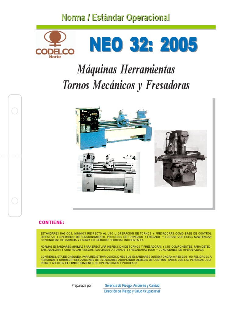 Norma de Uso Maquinas Herramientas - Tornos Mecanicos y Fresadoras | PDF | Herramienta de máquina | Herramientas