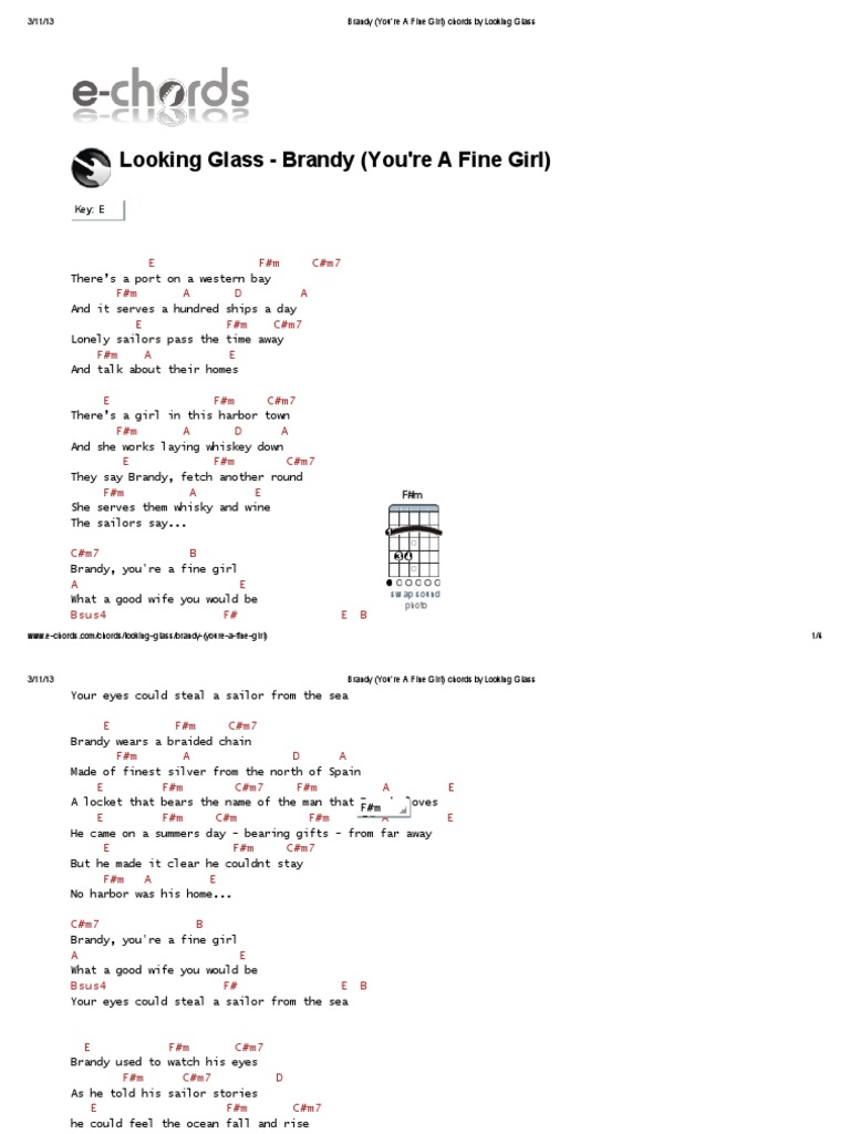 Brandy (You'Re A Fine Girl) Chords by Looking Glass | PDF