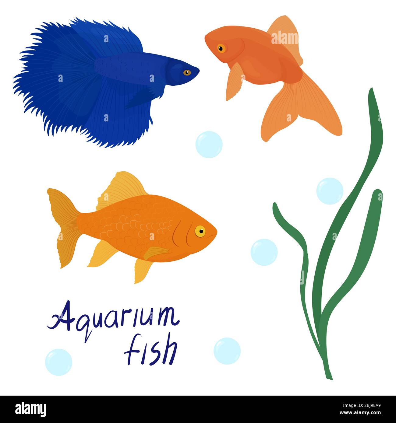 Vector de dibujos animados acuario de peces. Animales de mar, peces de oro sobre un fondo blanco vector ilustración Imagen Vector de stock - Alamy