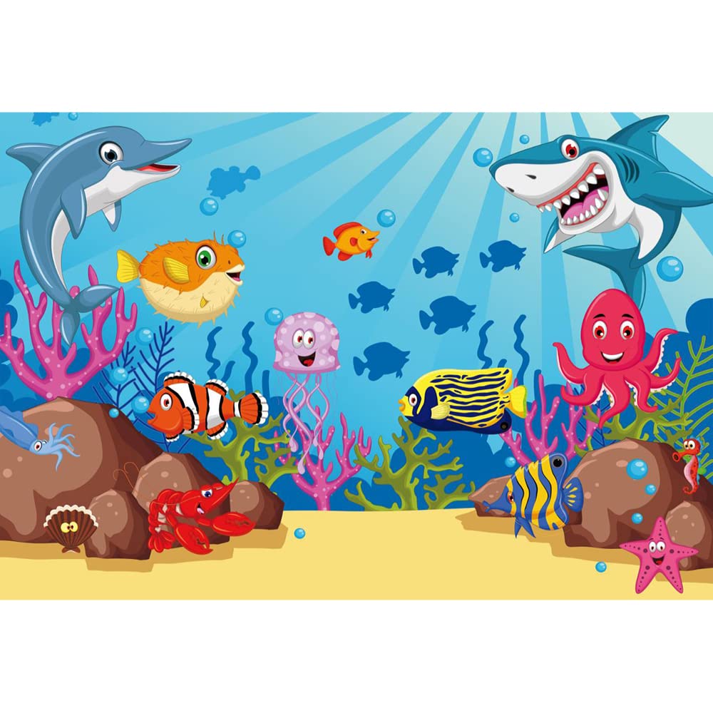 Aoihrraan 1,5x1m Mundo Submarino Dibujos Animados Telón De Fondo Acuario Animales Colorido Coral Tropical Peces Cuento Hadas Submarino Fondo Fotografía Bebe Fiesta Cumpleaños Niño Retrato Foto Vinyl : Amazon.es: Juguetes y juegos