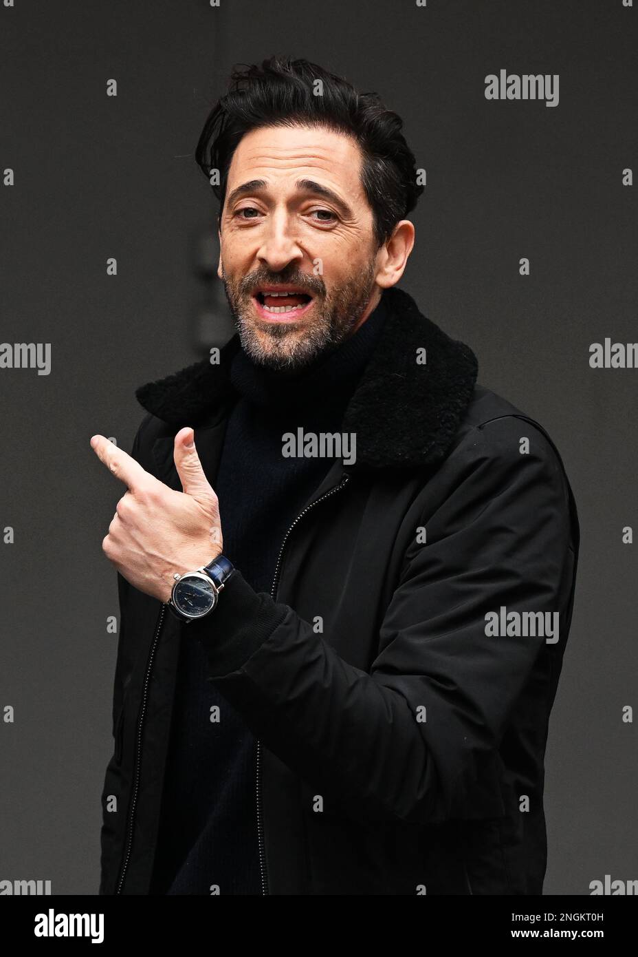 Berlin, Germany. 18th Feb, 2023. Adrien Brody, actor, arrives for the photo session for the film "Manodrome" at the Berlinale. The film is in competition. The 73rd International Film Festival runs until