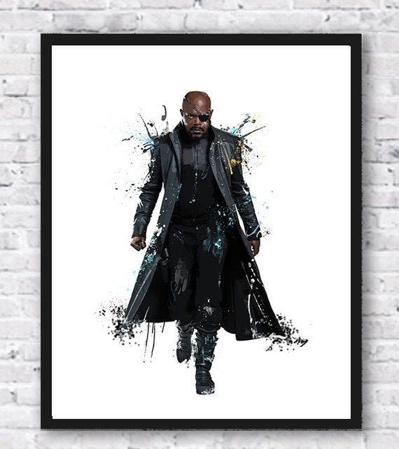 Nick Fury, Acuarela, Impresión de Arte, Vengadores, Agentes de Escudo, Superhéroe, Cómic, Marvel, Arte de pared, Cartel de película, Decoración de la habitación de los niños - Etsy España