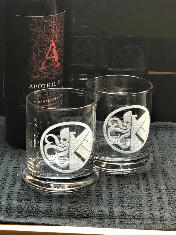 Gafas De Escudo, Gafas De Hidra, Agentes De Escudo, Regalo De Marvel, Boda De Maravilla, Arte De Maravilla, Vasos De Whisky, Vasos De Rocks, Vidrio Bourbon - Etsy España