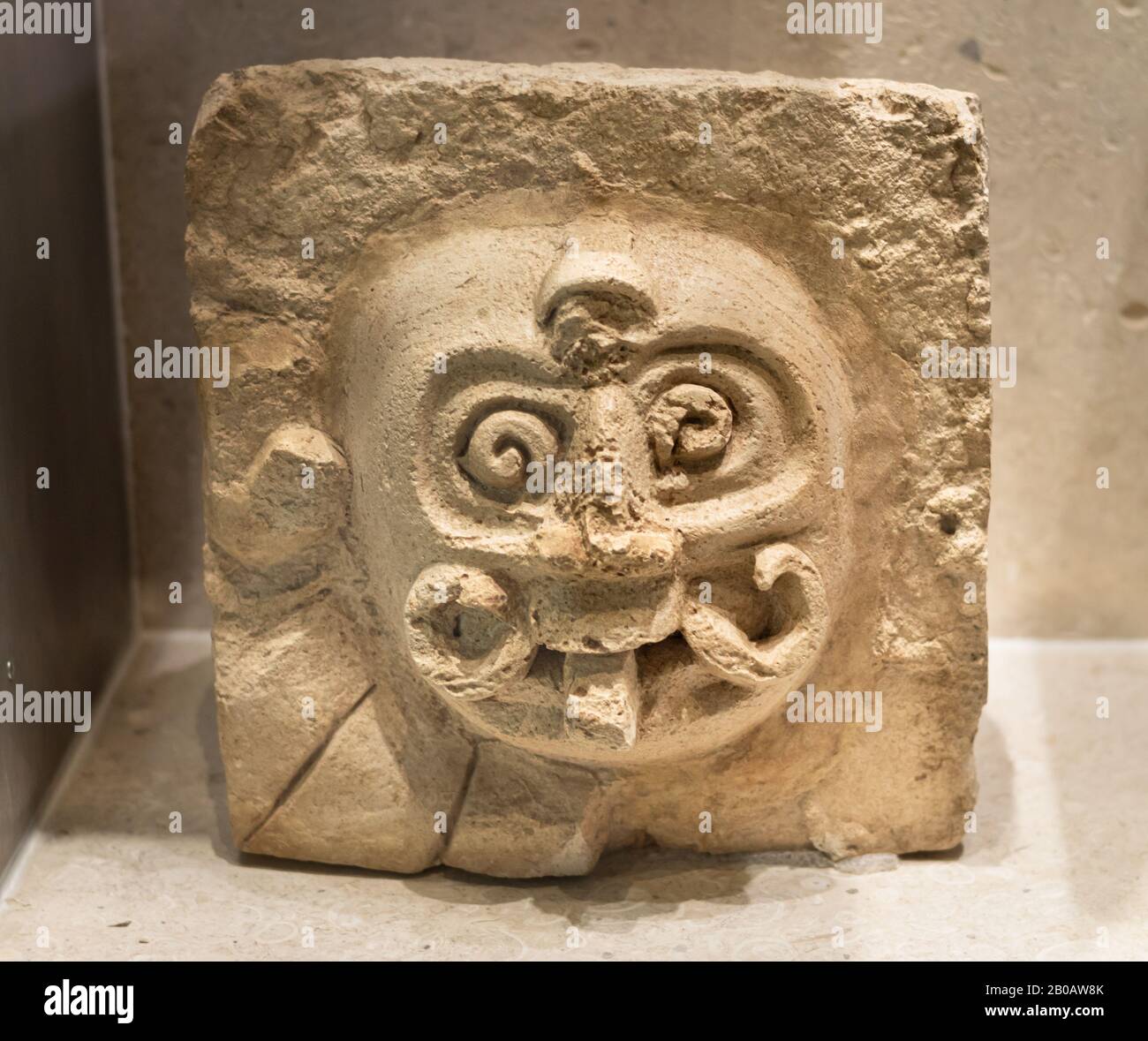 Madrid, Spain - Jul 11th, 2020: Funerary urn depicting Kinich Ahau ...