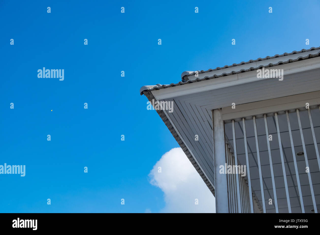 Aleros blancos con techo y el techo de la casa moderna contra el cielo azul bajo la luz del sol Fotografía de stock - Alamy