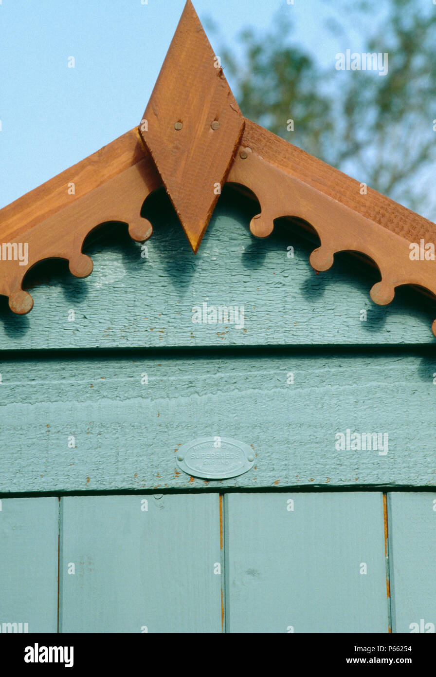 Close-up de aleros de techo de madera turquesa pálido barraca del jardín Fotografía de stock - Alamy