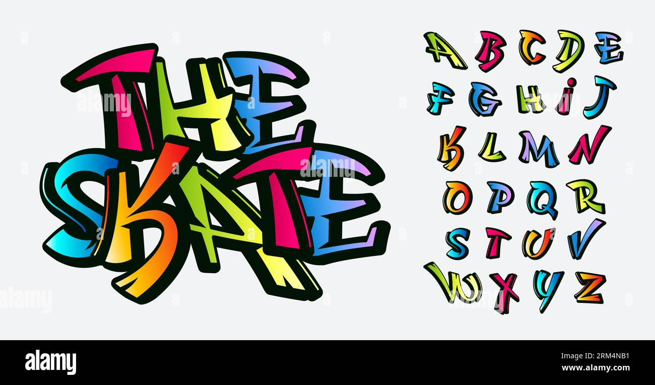 Juguetón alfabeto de graffiti, tipografía de letras rebeldes y coloridas. Fuente adolescente funky para la cultura skate y hip-hop. Tipografía animada y dinámica Imagen Vector de stock - Alamy