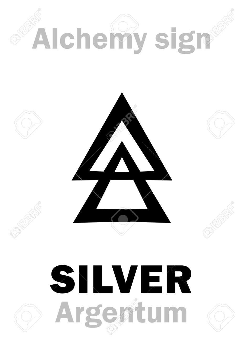 Alfabeto De Alquimia: PLATA (Argentum, Luna; Artemis) — Metal De La Luna, Metal Precioso/noble/de Valor, Eq.: Argyros, Silver, Silber, Silubr, Sirebro. Fórmula Química=[Ag]. Símbolo Alquímico, 1726. Ilustraciones svg, vectoriales, clip art vectorizado