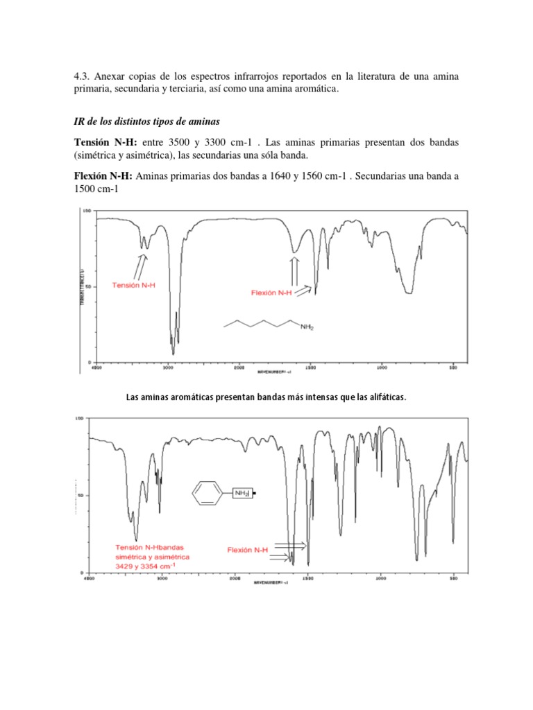 Espectros infrarrojos de diferentes tipos de aminas: primaria, secundaria, terciaria y aromática | PDF