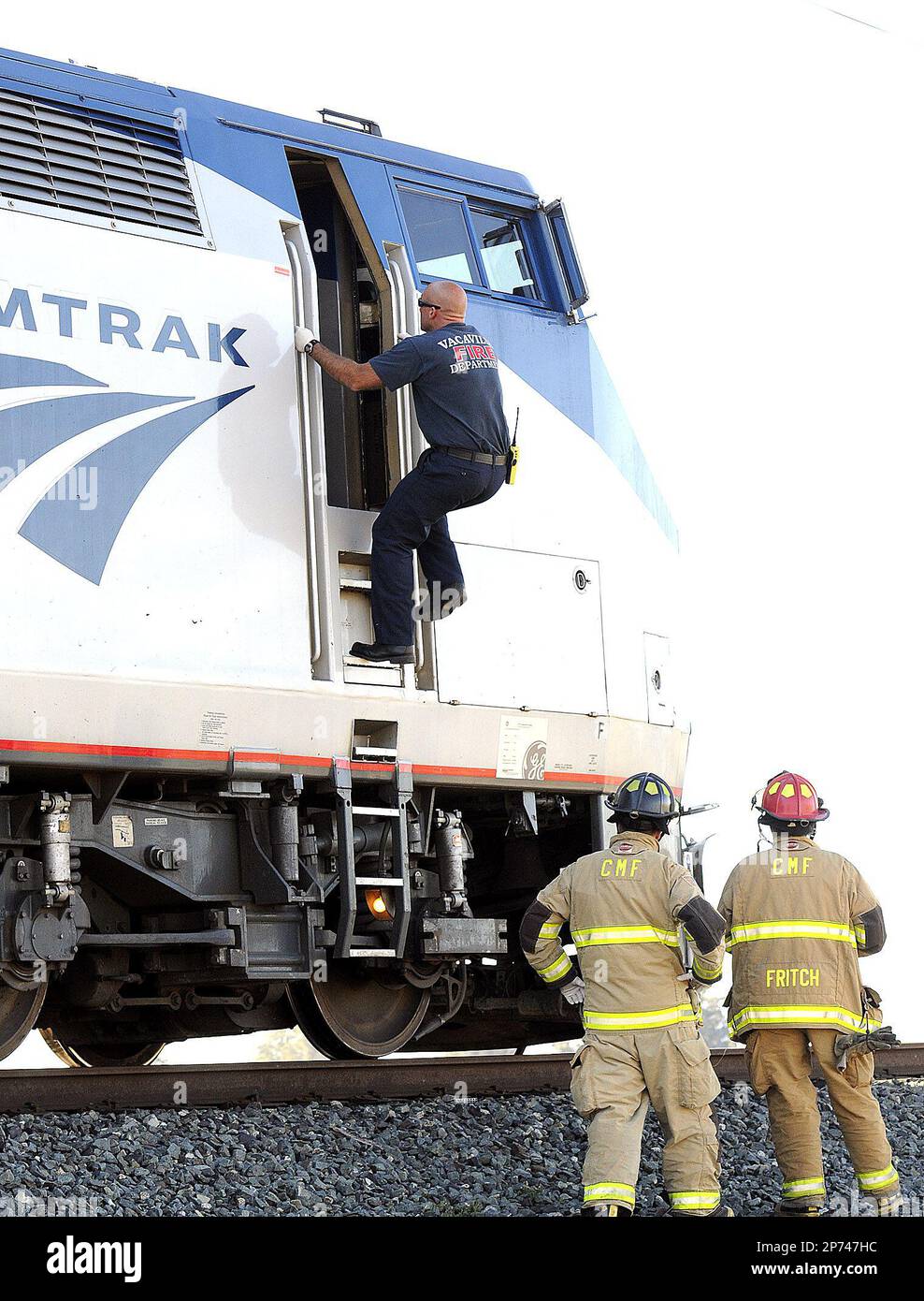 Emergency crews work at the scene of an Amtrak train vs. big rig near Vacaville, Calif. Monday, August 1, 2011. According to the California Highway Patrol, about 8:30 a.m. the Amtrak Coast