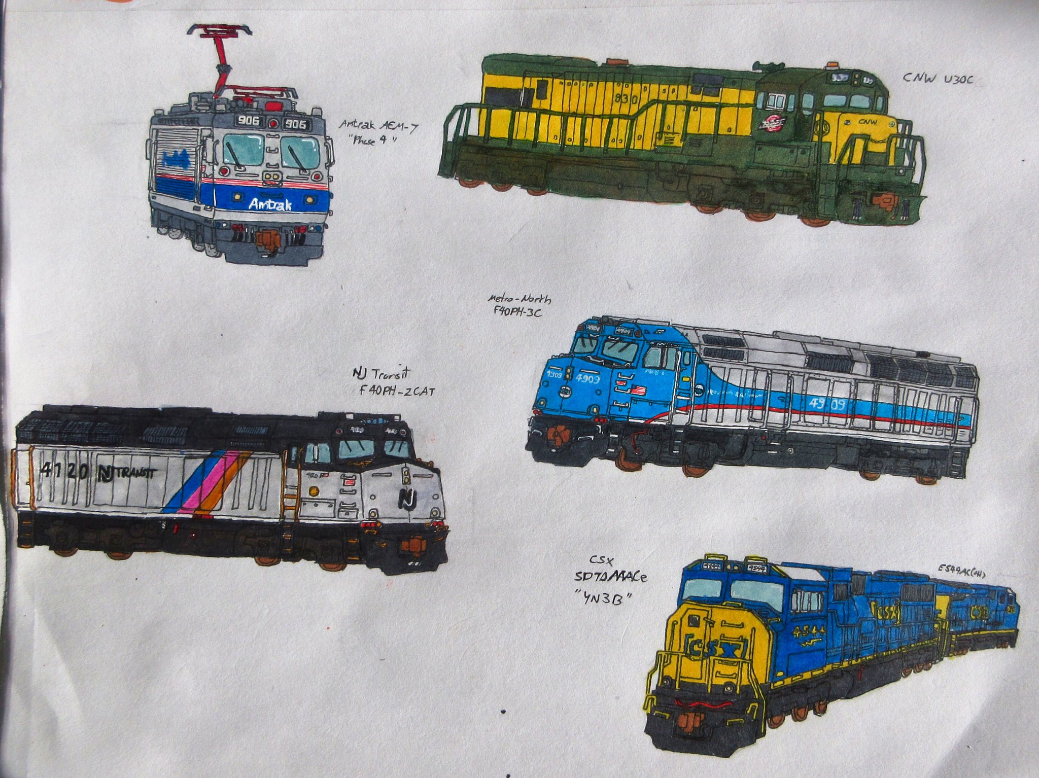 SmiddysToons on X: "Alright I got some more trains for yah. Along with the SD70 I drew: -Amtrak AEM-7 “Phase 4” -Chicago & Northwestern U30C -New Jersey Transit F40PH-2CAT -Metro North F40PH-3C ~ #