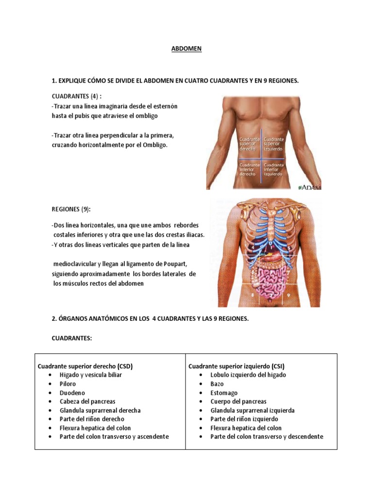 Abdomen: cuadrantes, regiones y exploración física | PDF ...