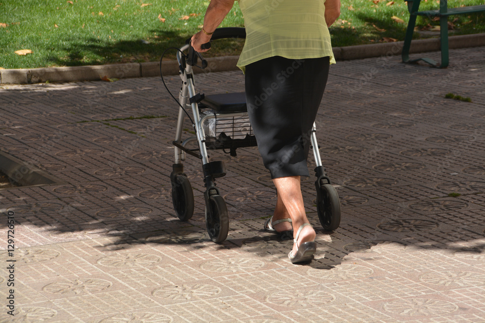 Anciana caminando con la ayuda de un andador Stock Photo | Adobe Stock