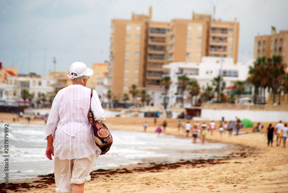 ANCIANA CAMINANDO POR LA PLAYA Stock Photo | Adobe Stock