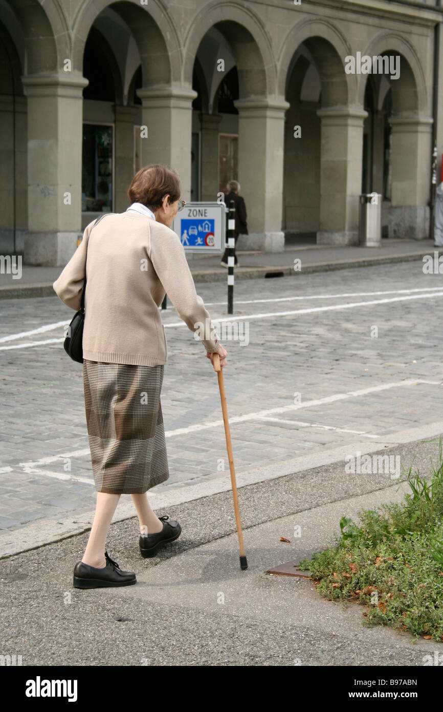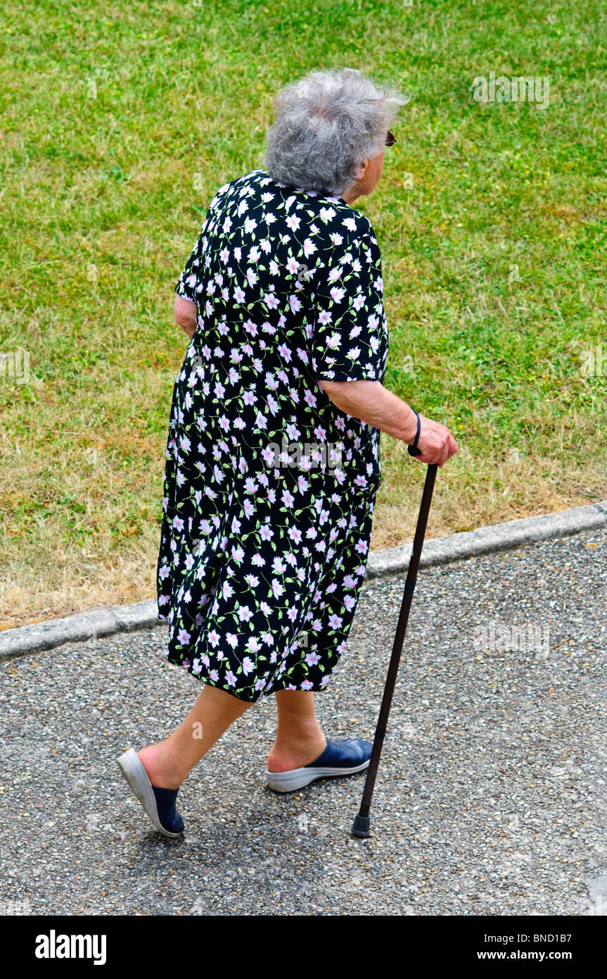 Anciana con bastón caminando a lo largo de pavimento - Francia Fotografía de stock - Alamy