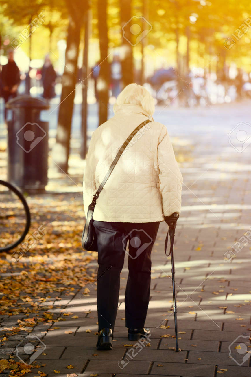 Alone Old Woman Walking On The Street With Stick Stock Photo, Picture and Royalty Free Image. Image 37494178.