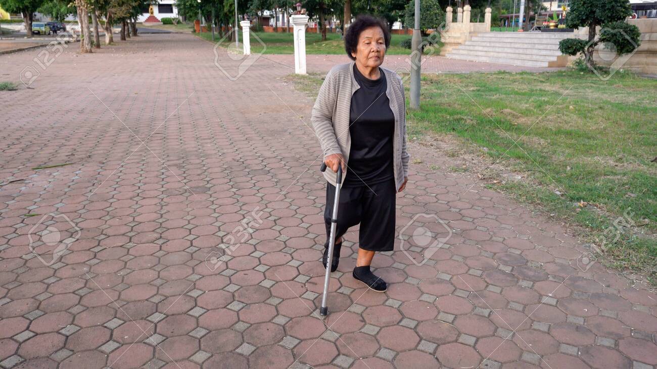 Anciana Caminando Con Bastón En El Parque Fotos, retratos, imágenes y fotografía de archivo libres de derecho. Image 134071712