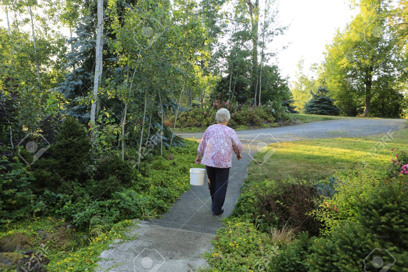 Una Anciana Caminando Por La Calle Con Un Pequeño Cubo. Fotos, retratos, imágenes y fotografía de archivo libres de derecho. Image 26231605