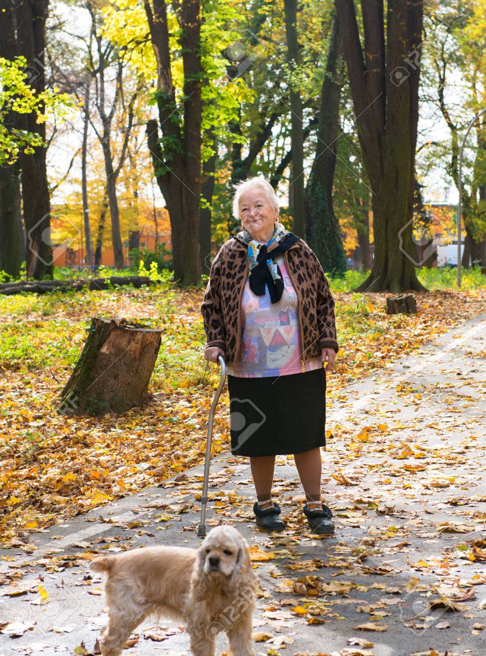 Anciana Caminando En El Parque De Otoño Imagen de archivo - Imagen de mayor, ocio: 200815363