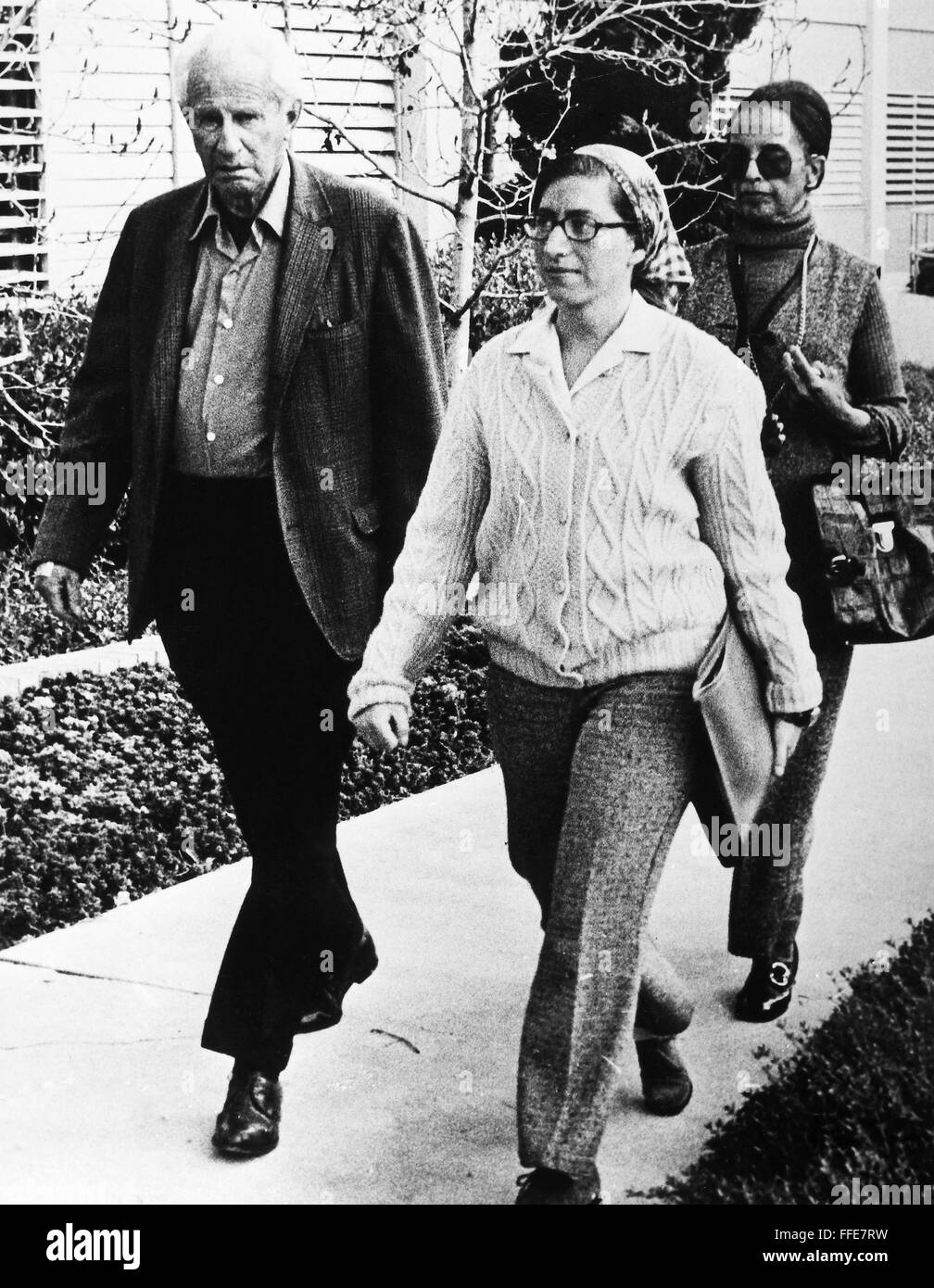 ANGELA DAVIS TRIAL, 1972. /nHerbert Marcuse, Marxist philosopher and teacher of political activist Angela Davis, walks toward the search shed outside the courtroom in San Jose, California, during Davis' trial, March 1972.