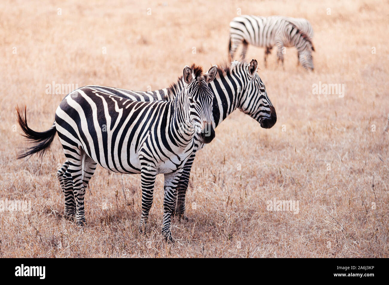 Pareja de cebra en campo de hierba dorada en Ngorongoro Zona ...