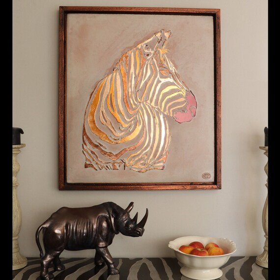Rose Gold and Copper Zebra Painting, Bar Restaurant Decor, Unique ...