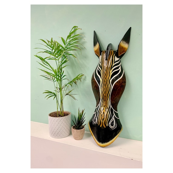 Máscara de cebra Ola dorada Madera tallada a mano Colgante de ...