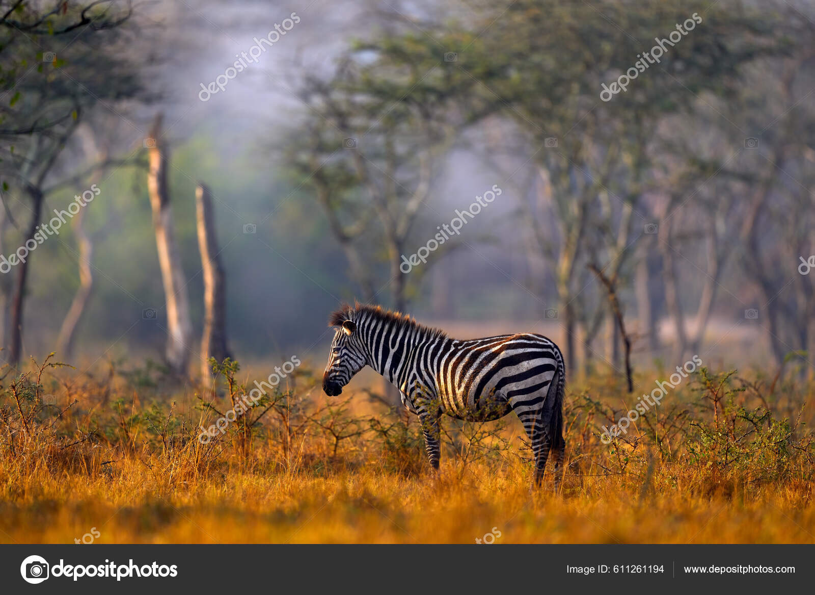 África Niebla Mañana Bosque Cebra Cebra Con Hierba Dorada Amarilla ...