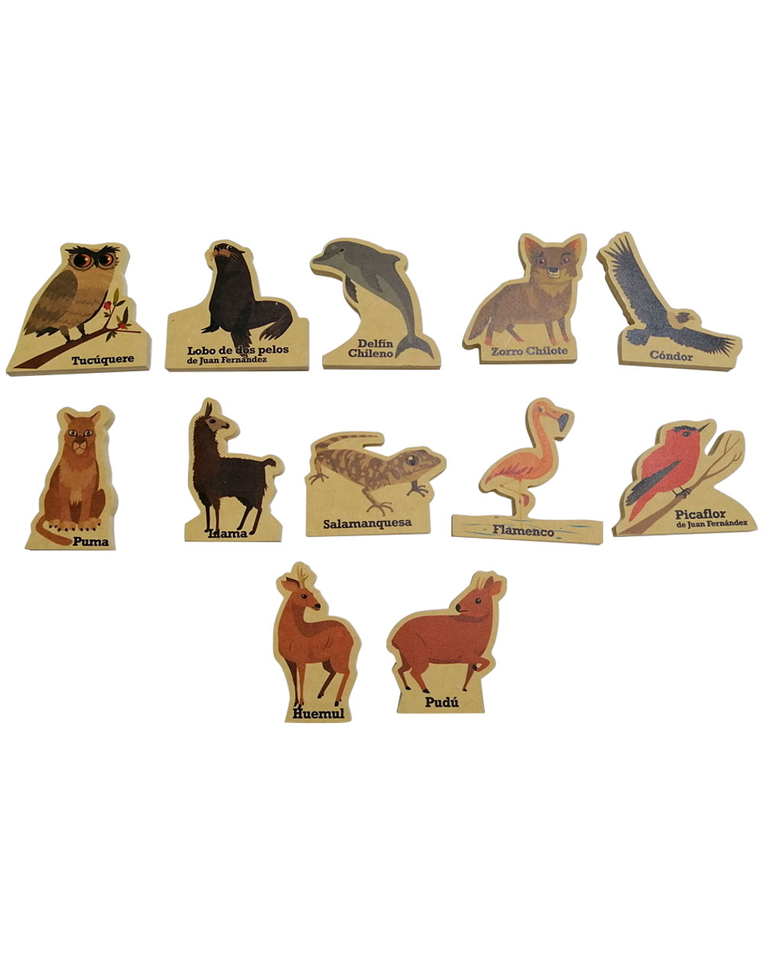 Set de 12 Animales de Madera Fauna Chilena