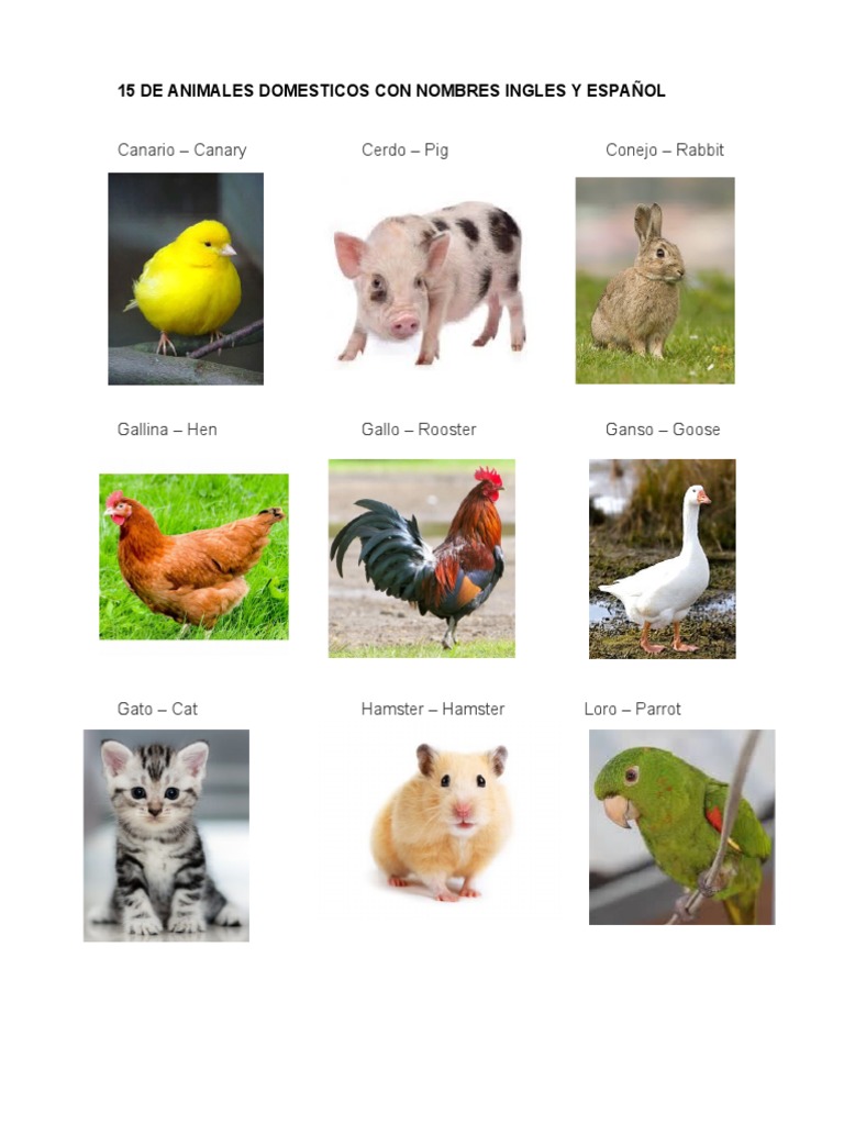 15 de Animales Domesticos Con Nombres Ingles y Español | PDF