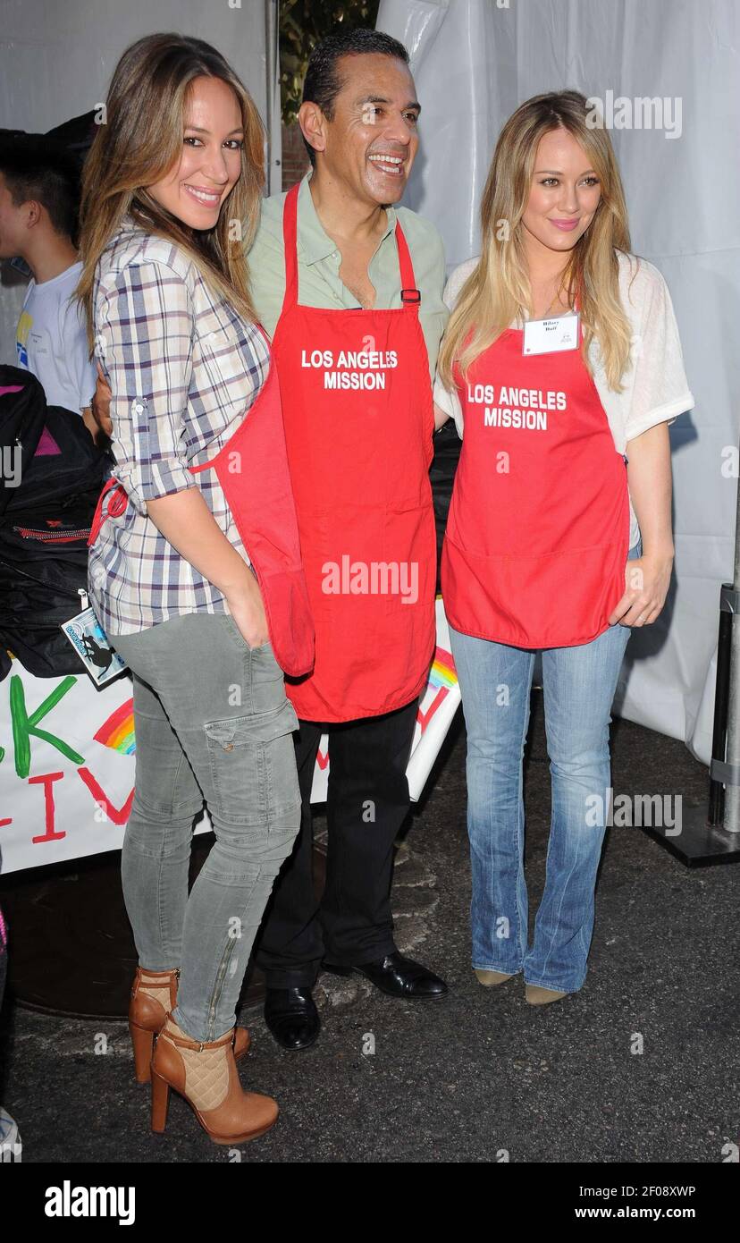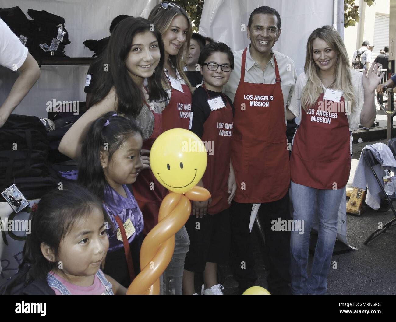Haylie Duff, Mayor Antonio Villaraigosa and Hilary Duff at the LA Mission Easter for the Homeless event, held at The LA Mision, California Stock Photo - Alamy