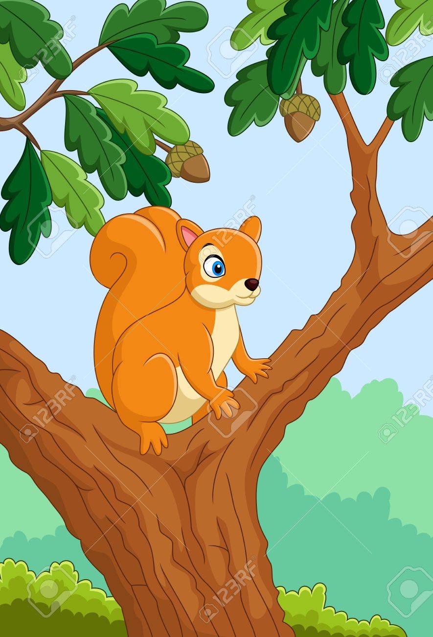 Ilustración De Dibujos Animados Divertido Ardilla En El Árbol ...