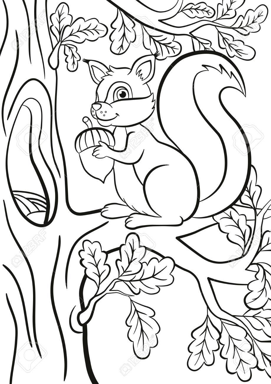 Dibujo Para Colorear. Pequeña Ardilla Linda Que Se Sienta En El ...