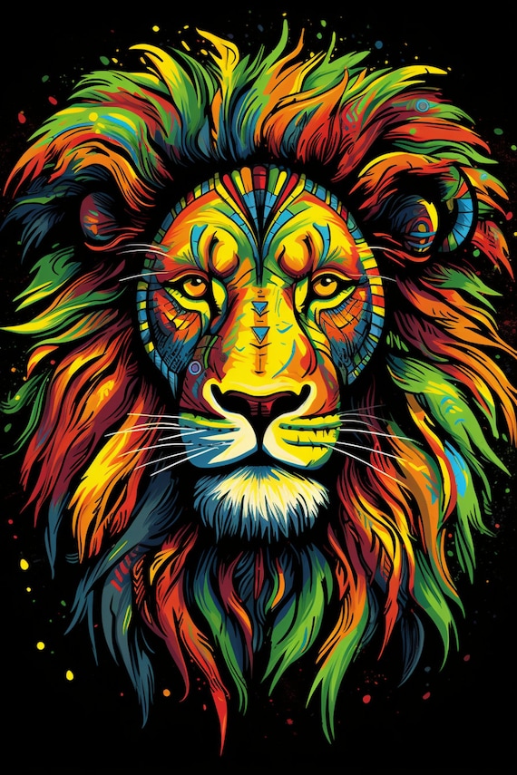 Arte del león jamaicano / Impresión de descarga digital / Decoración del león africano / Fondo de pantalla del teléfono celular / León rastafari