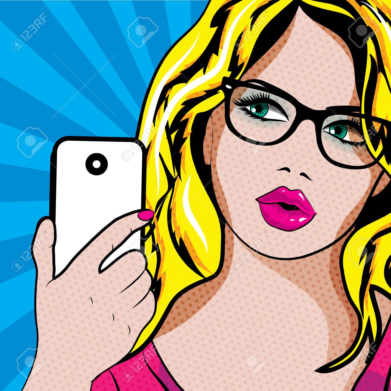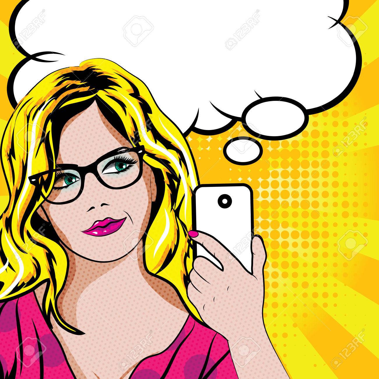 Mujer, El Arte Pop Con El Teléfono Celular Ilustraciones svg ...
