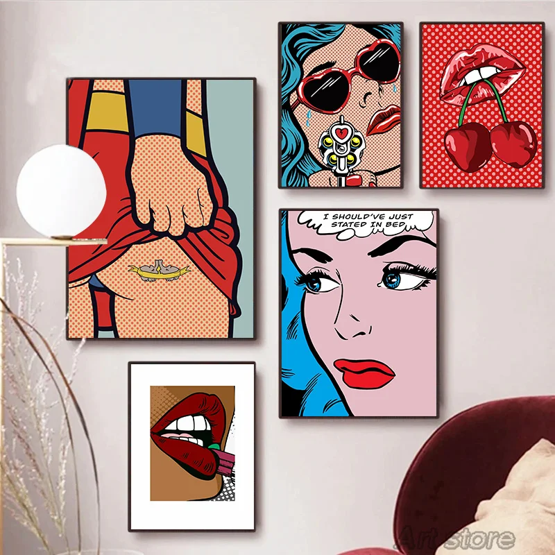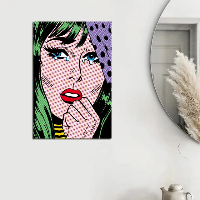 Arte Pop Retro de cómic para mujer, arte de pared de labios de chica triste, pintura en lienzo, carteles e impresiones, imágenes de pared para el hogar, decoración de la habitación de la cama - AliExpress