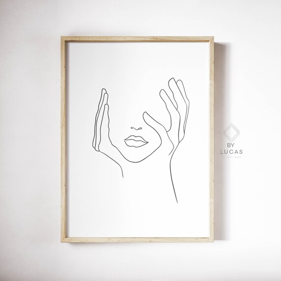 Archivos imprimibles de arte triste, dibujo de figura femenina, impresiones de arte de línea en blanco y negro, decoración de pared minimalista, arte abstracto de mujer llorando imprimible - Etsy España