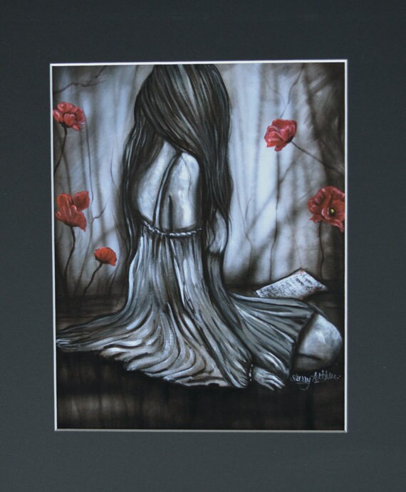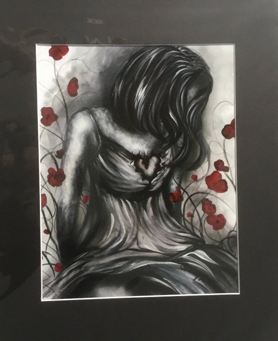 Mujer Triste Con Flores Rojas Impresión De Reproducción De Corazón Vacío - Etsy España
