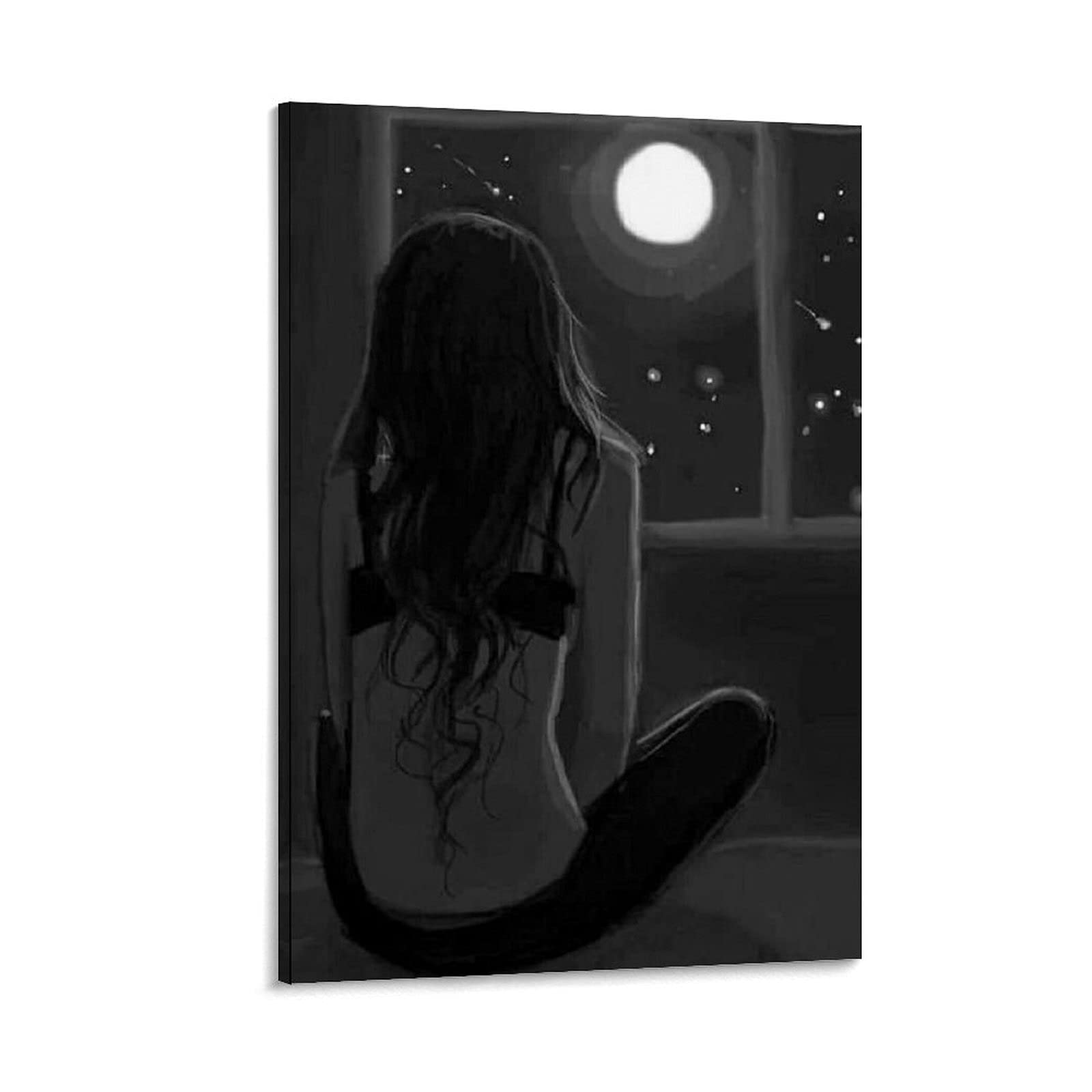 Póster de manga animación de mujer triste arte en lienzo y arte de la pared con impresión moderna para dormitorio familiar de 40 x 60 cm : Amazon.es: Hogar y cocina