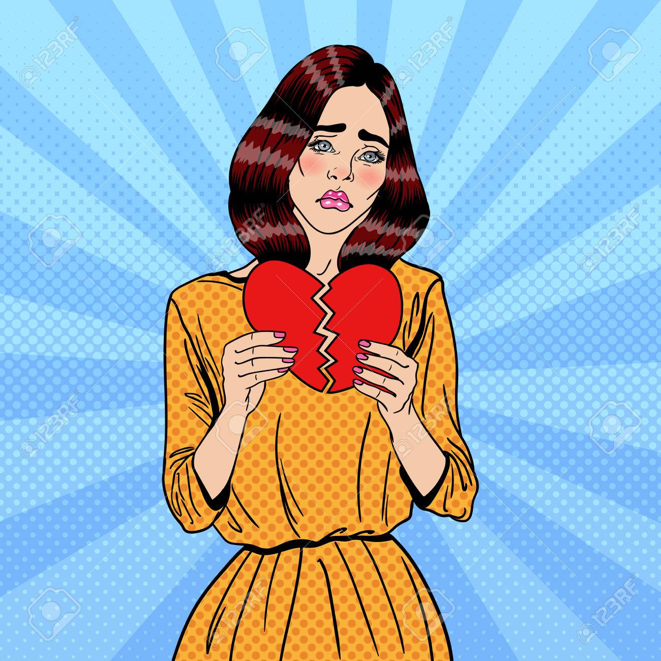 Triste Infeliz Del Arte Pop De La Mujer Que Rasga El Corazón Rojo De Papel. Ilustración Vectorial Ilustraciones svg, vectoriales, clip art vectorizado libre de derechos. Image 62684382