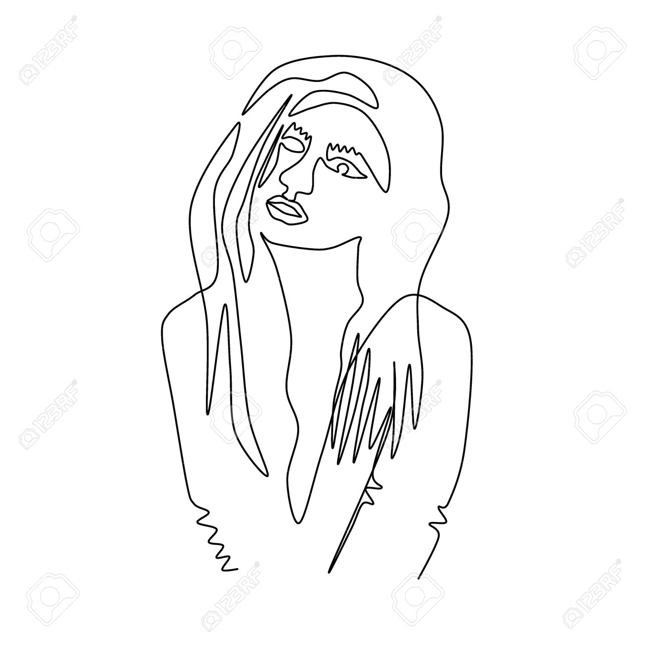 Cara De Arte De Línea De Mujer Triste. Retrato Femenino Estilo Cubismo Dibujado a Mano. Ilustración del Vector - Ilustración de continuo, mirada: 262727639