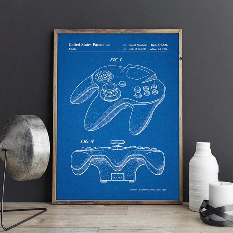 Impresión de patente del controlador Nintendo 64, Plano del joystick para juegos, Nintendo clásico, Regalos para fans de Nintendo, Arte de pared de la sala de juegos, Decoración de juegos - Etsy España