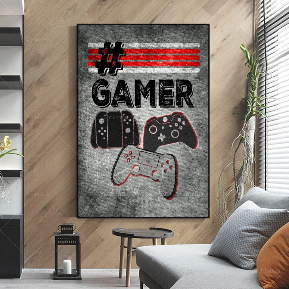 Arte de pared de impresión de controlador NINTENDO Switch, decoración de habitación de Niños de videojugador rojo, póster de videojuegos para sala de juegos o decoración de habitación de adolescentes - AliExpress