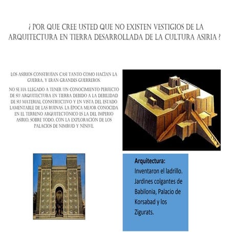 Por que cree usted que no existen vestigios de la arquitectura en tierra desarrollada de la cultura asiria | PPT