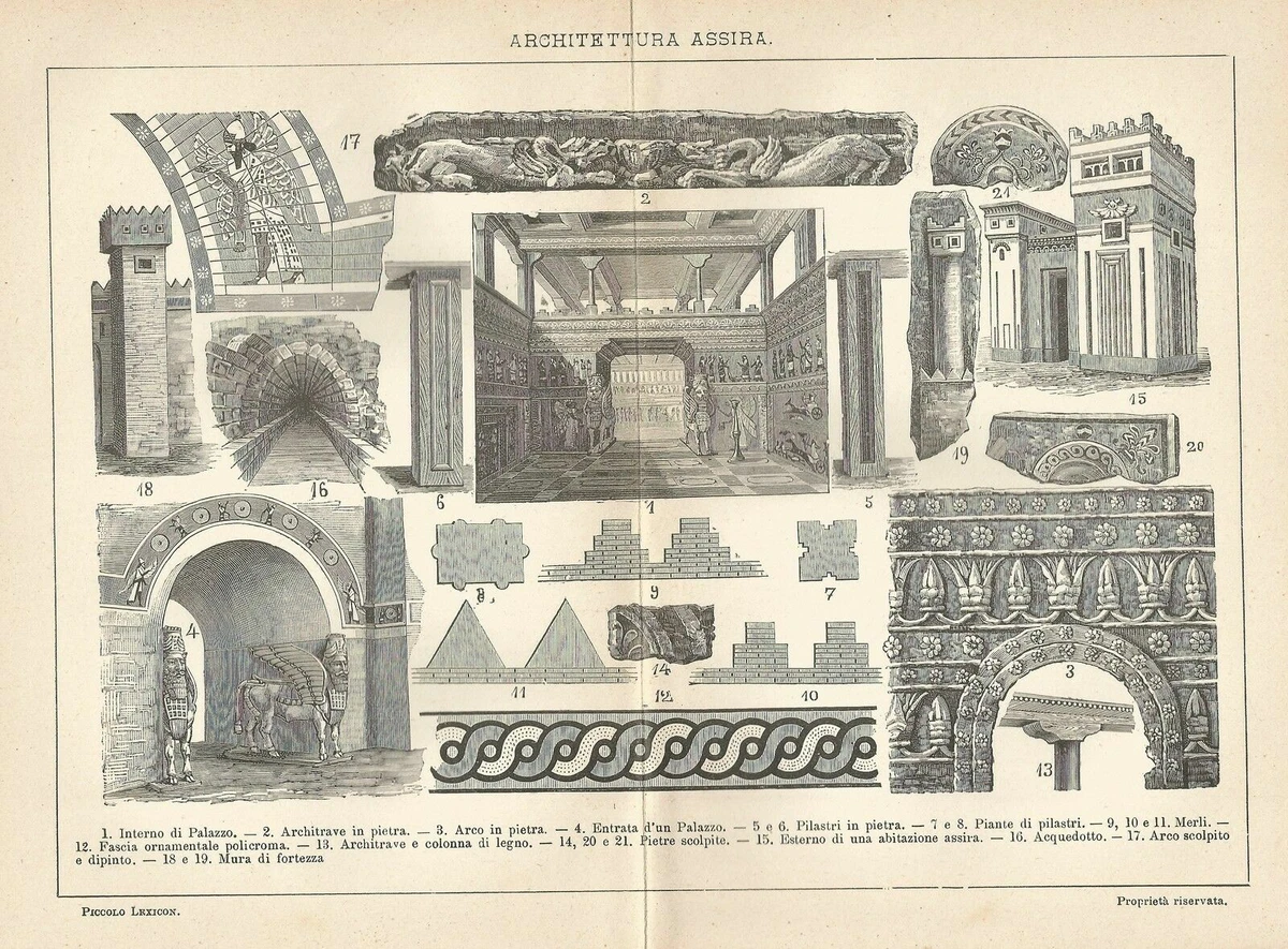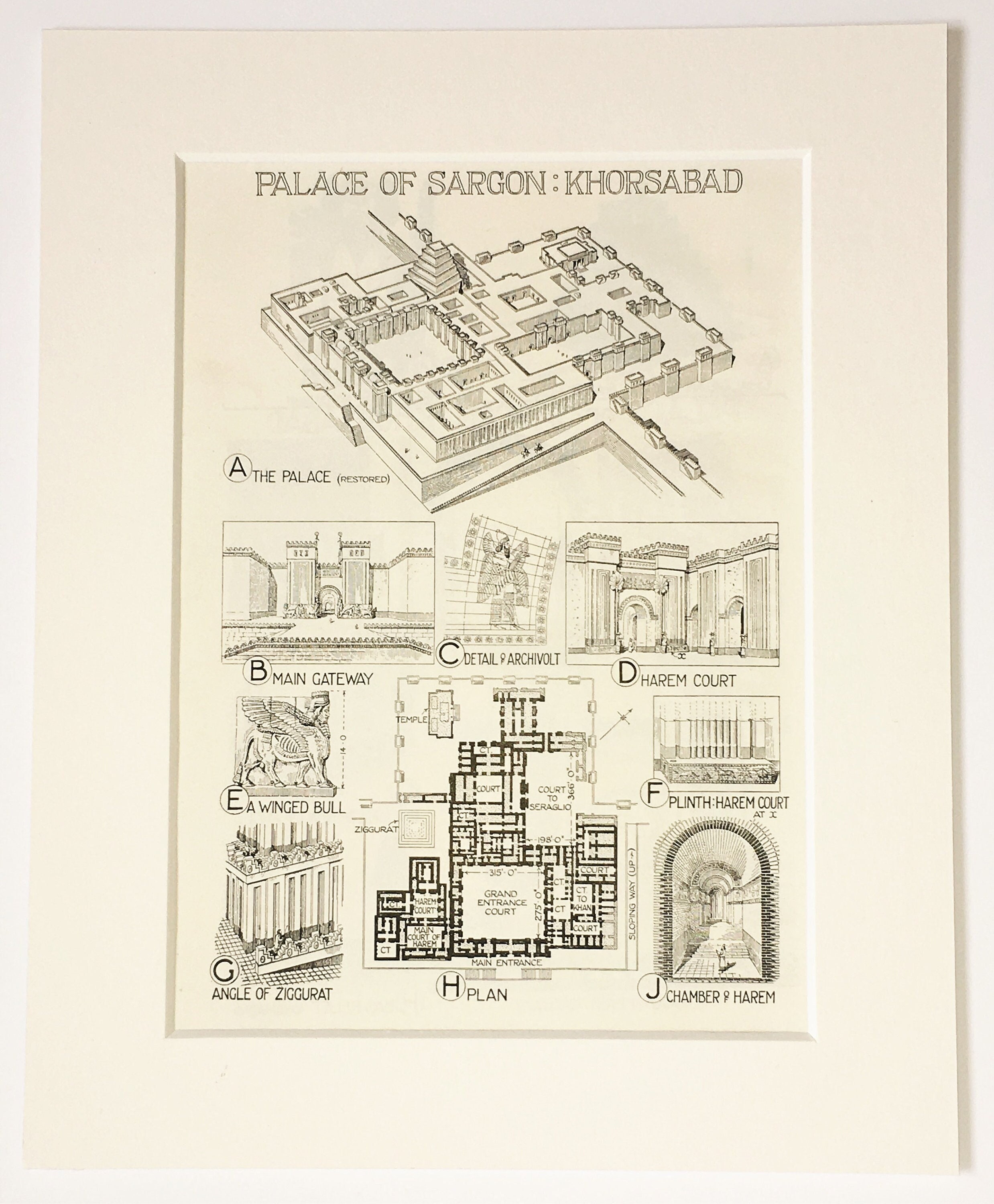 ARQUITECTURA ASIRIA, Palacio Sargón, Impresión antigua de 1890, Impresión en blanco y negro mate montada - Etsy México