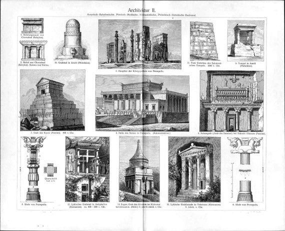 Arquitectura persa babilónica asiria 1906 Acero eduardiano Grabado en marco Blanco y negro - Etsy México